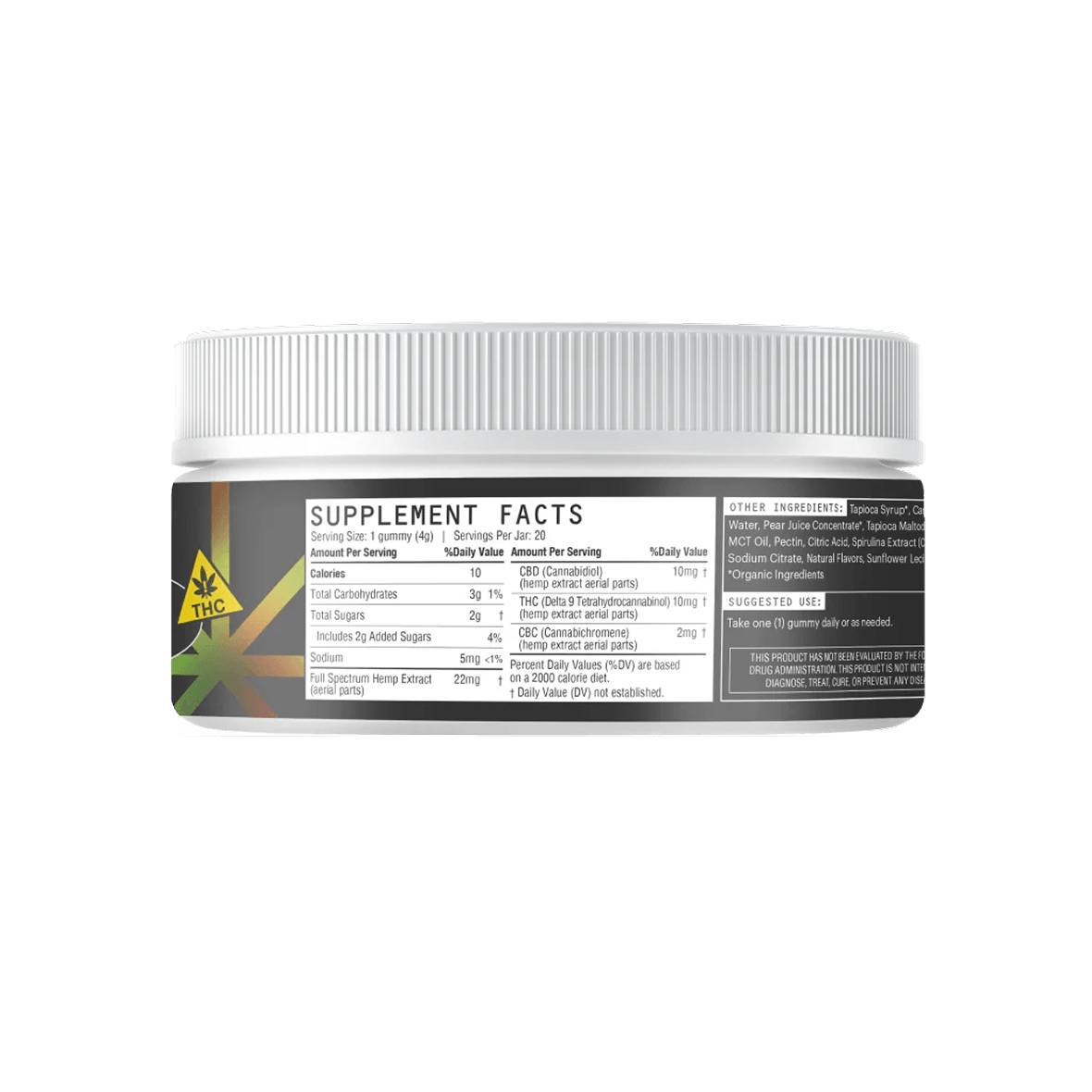 surge with five gummies, crafted with 10mg delta-9 thc and other cannabinoids for an energizing, fully powered buzz. enjoy the tangy sour blue razz flavor and keep the vibes high all day long.