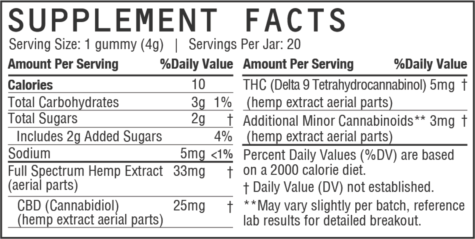 For a light and breezy experience, begin with 1 gummy then wait 45 minutes before taking any more, if needed.